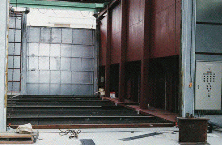 塗装過程において発生する噴霧状の塗料を塗装場の下部に設けられた水 槽に沈下させる装置。天井にファンの取り付けられた屋型、グレーチング、 水槽、循環ポンプ、排気ダクトより構成される。